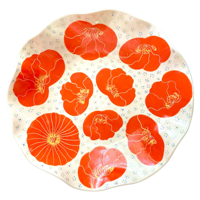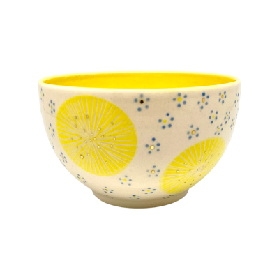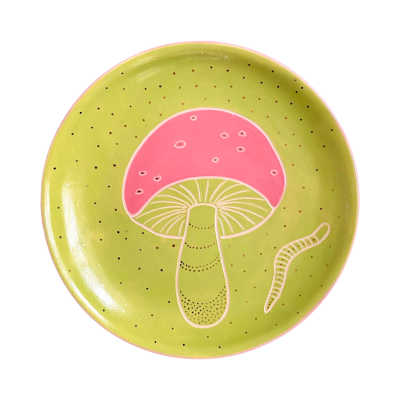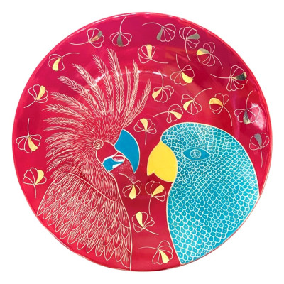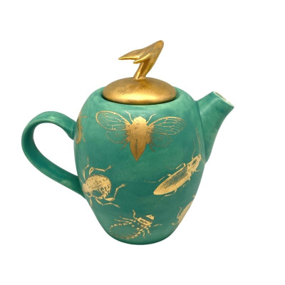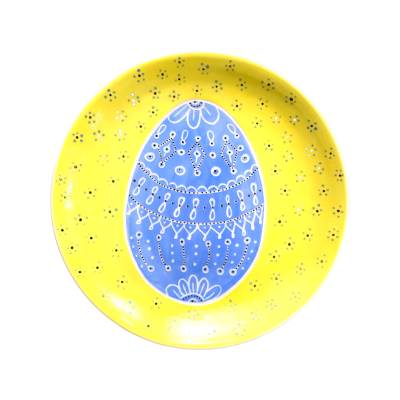 Siidiselt matt kollane taldrik kuldsete putukatega