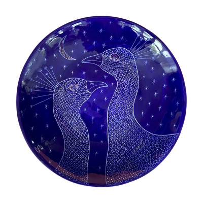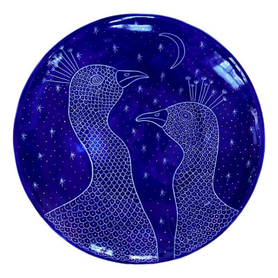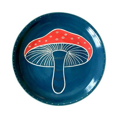 Kuldsete liblikatega siisiselt matt sinine taldrik