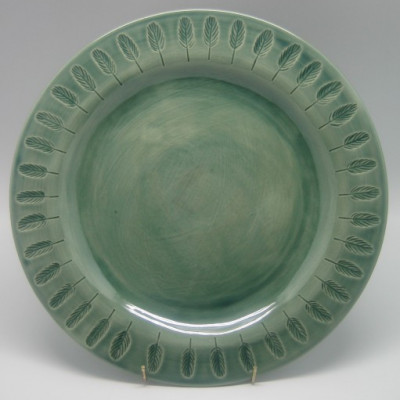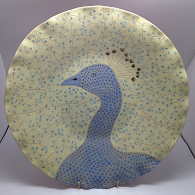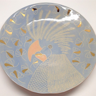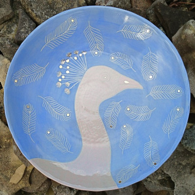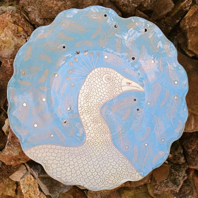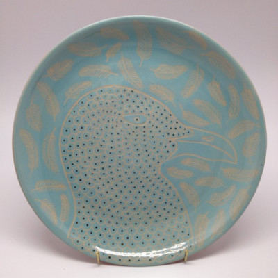 Hõbedase nokaga linnuga türkiissinine taldrik