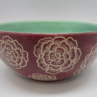 Bordoopunane vaagen kollase nokaga linnuga ja kuldsete kirssidega