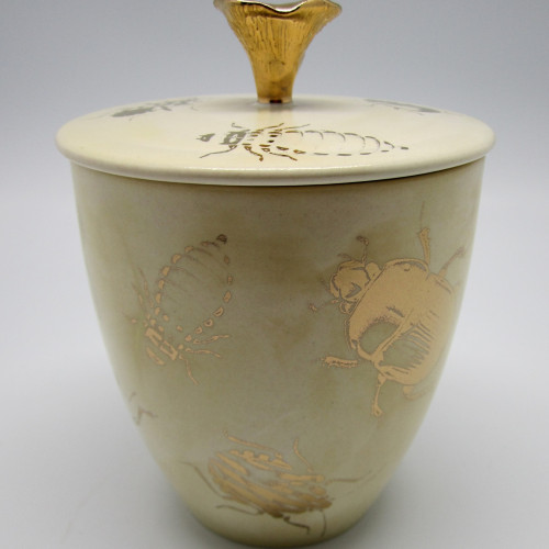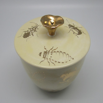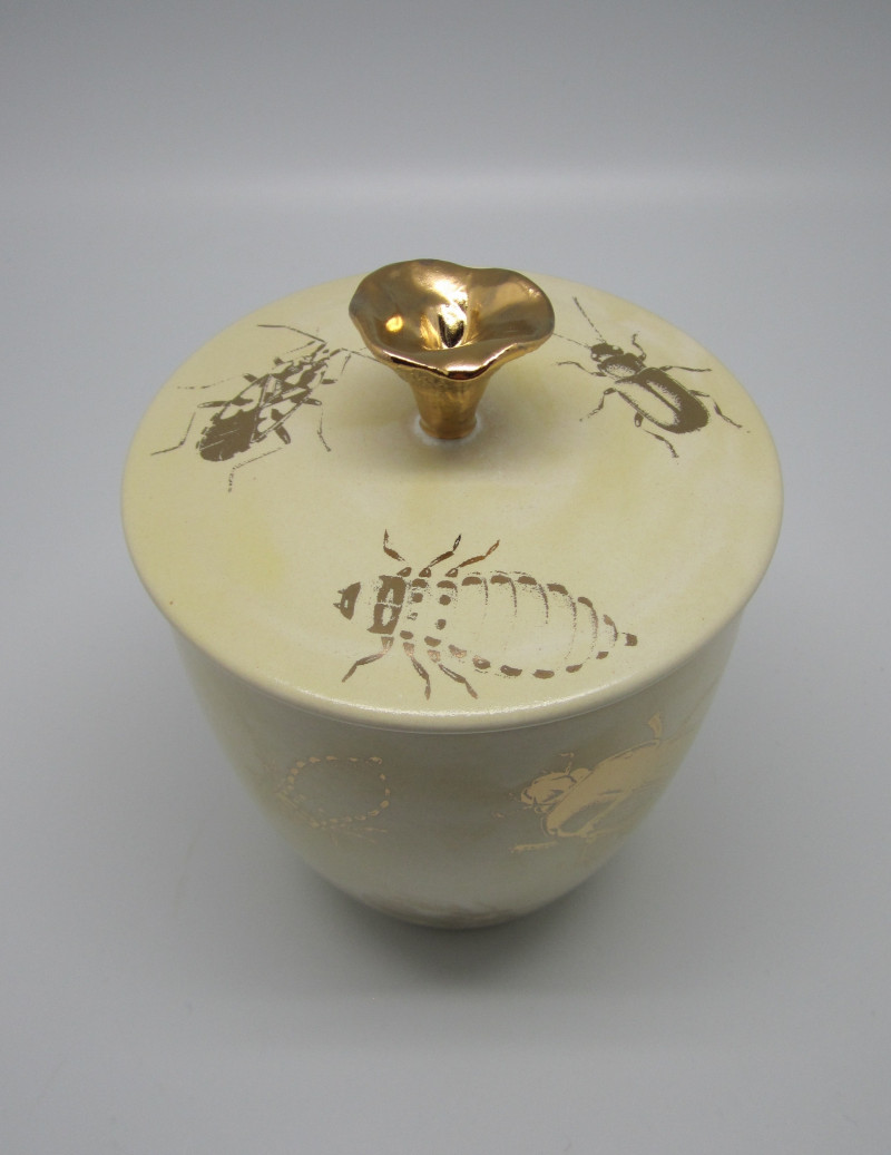 Kuldse seenekesega siidine valge meepott