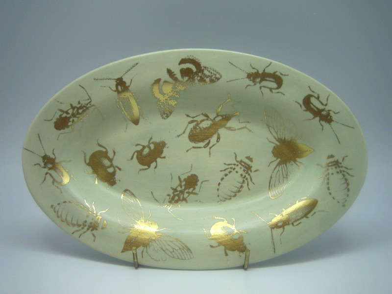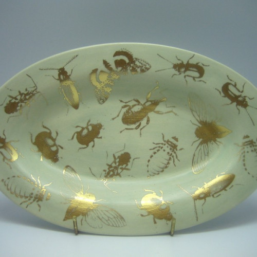 Kuldsete putukatega türkiissinine ovaalne väike vaagen