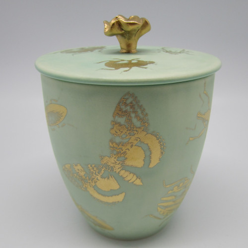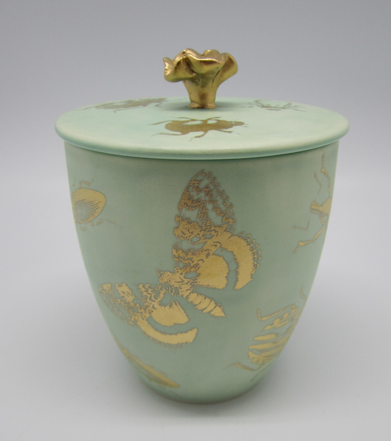 Matt türkiis meepott kuldse lillega