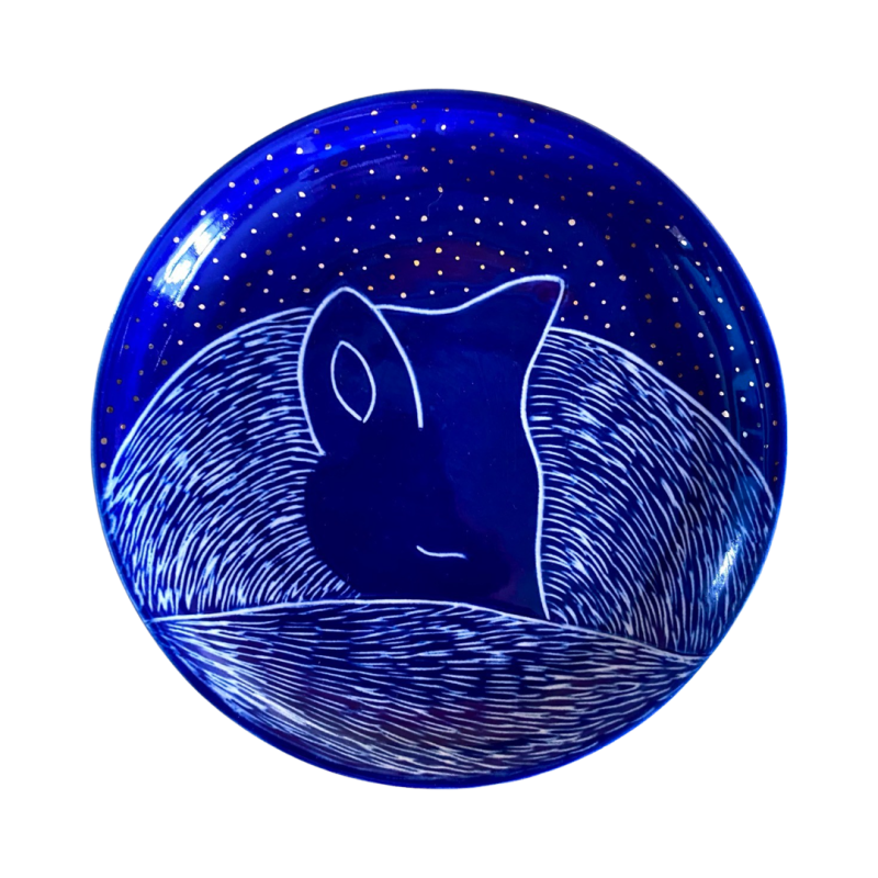 Käsitsi tehtud, detailid kullaga. Soovitan seda taldrikut pesta käsitsi, kuna kuld on pehme metall ja kulub nõudepesumasinas maha. D=19,5 cm.