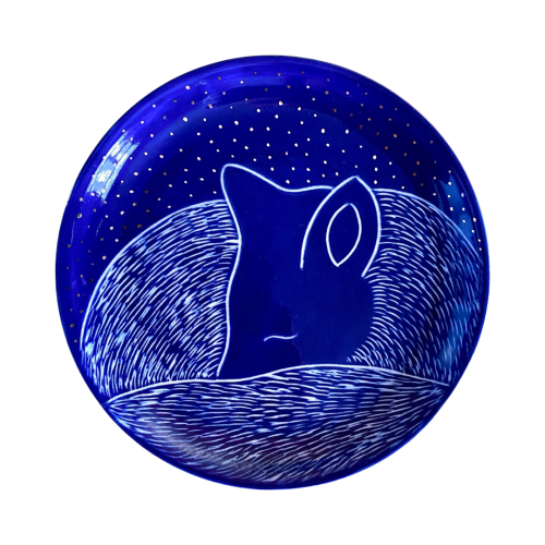 Käsitsi tehtud, detailid kullaga. Soovitan seda taldrikut pesta käsitsi, kuna kuld on pehme metall ja kulub nõudepesumasinas maha. D=19,5 cm