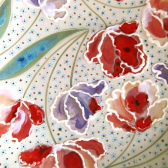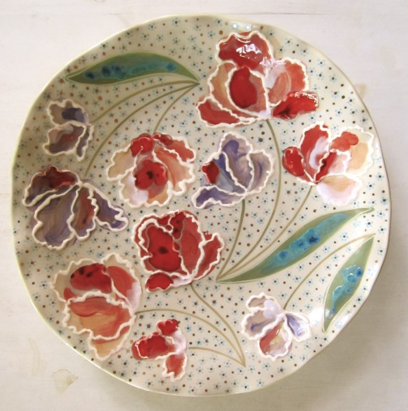 Papagoi tulpidega taldrik, alt helekollane