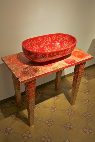 Valamu käsitsi voolitud. Laud on Liisu isa, kunstnik Jaak Arro töö. Erakogu