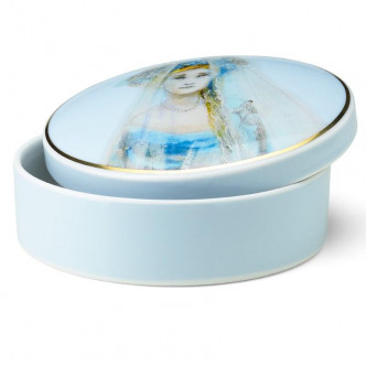 Karp on valmistatud portselanist ja kaane serv on kullatud. Karbike on pakitud kinkekarpi.