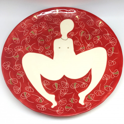 Punane vaagen naise ja hõlmikpuu lehtedega