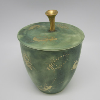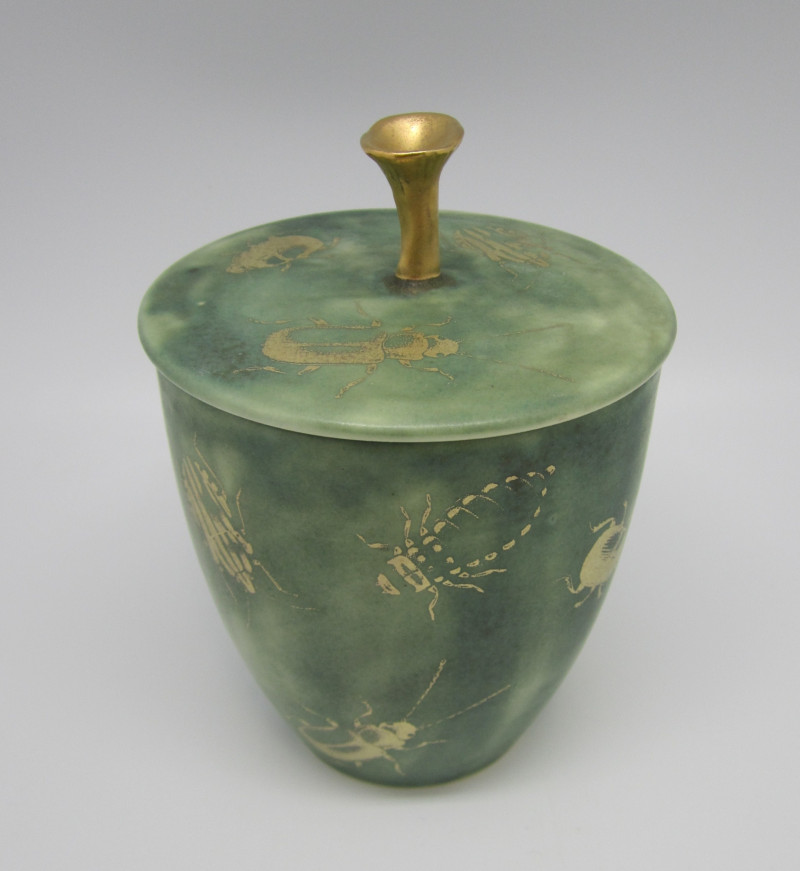 Sametine kuldse kukeseene ja putukatega roheline potsik