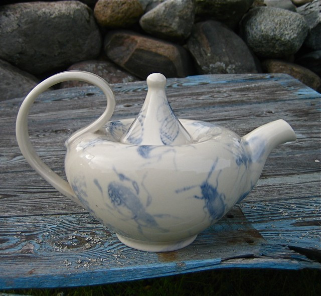 Siniste sitikatega teekann