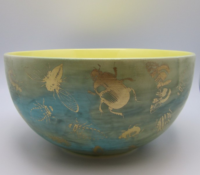 Detailid kullaga, väljast matt, seest läikiv kollane.