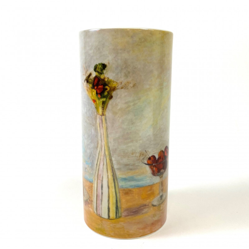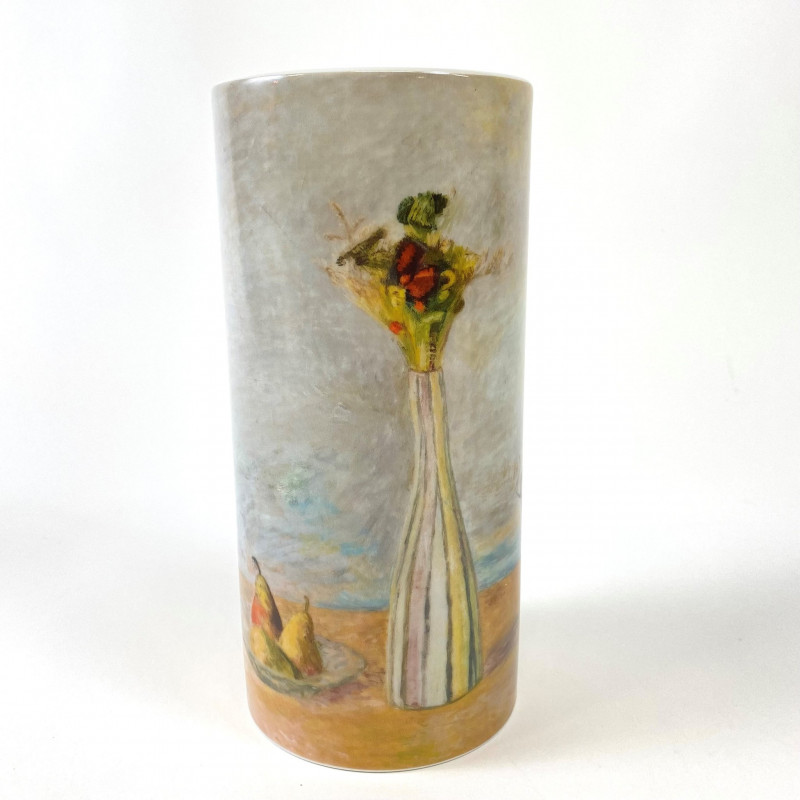 Vaasil on kujutatud Liisu vanaisa Luulik Kokamägi loomingut 1970-ndatest. Pastelsetes toonides tüüne natüürmort loob helge ja mõnusa atmosfääri. Vaas on tehtud portselanist. H= 25 cm, D= 12cm