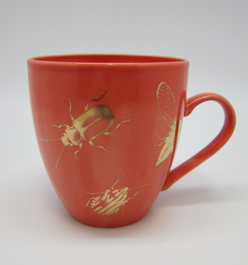 Väga suur korallpunane kruus kuldsete putukatega