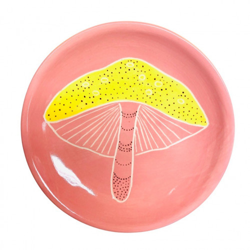 Väike roosa taldrik seenega